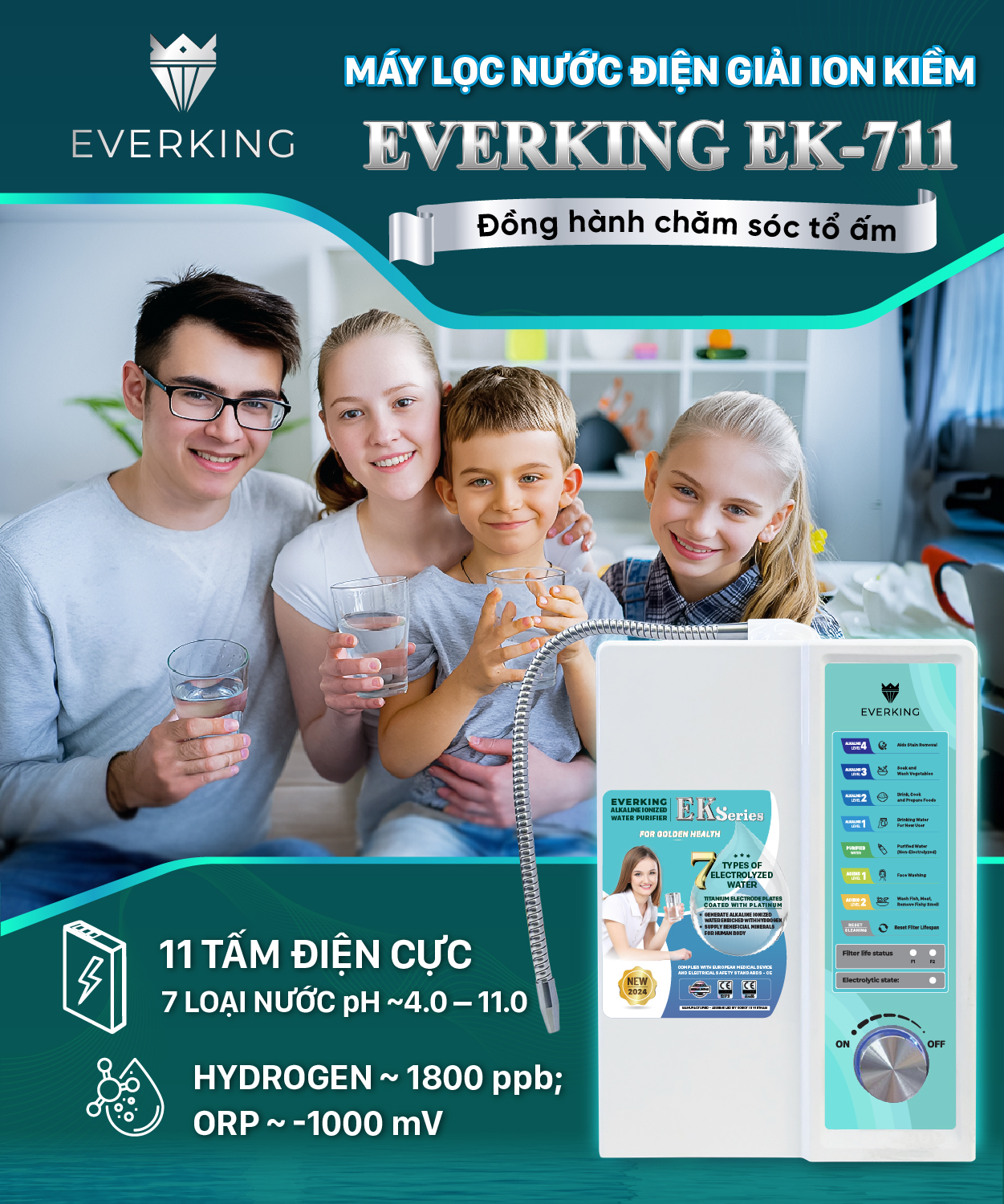 Máy lọc nước điện giải ion kiềm EVERKING EK-711 đồng hành chăm sóc tổ ấm của bạn