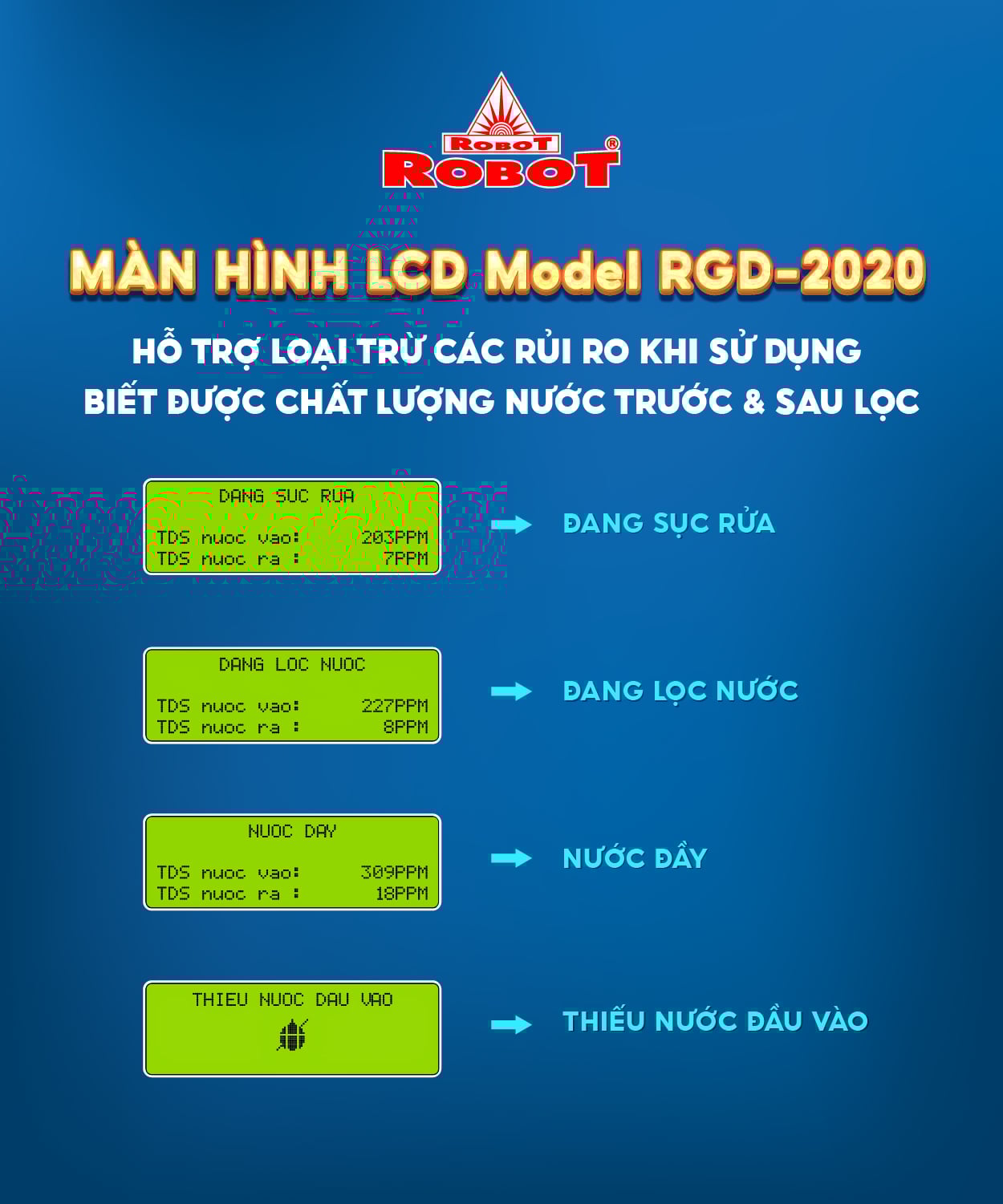 Duy trì mục tiêu lan tỏa nguồn nước tốt đến với cộng đồng, các sản phẩm từ nhà sản xuất ROBOT luôn ổn định với mức giá tối ưu và cùng nhiều chương trình ưu đãi, khuyến mãi trong năm mang đến lợi ích cho người dùng.
