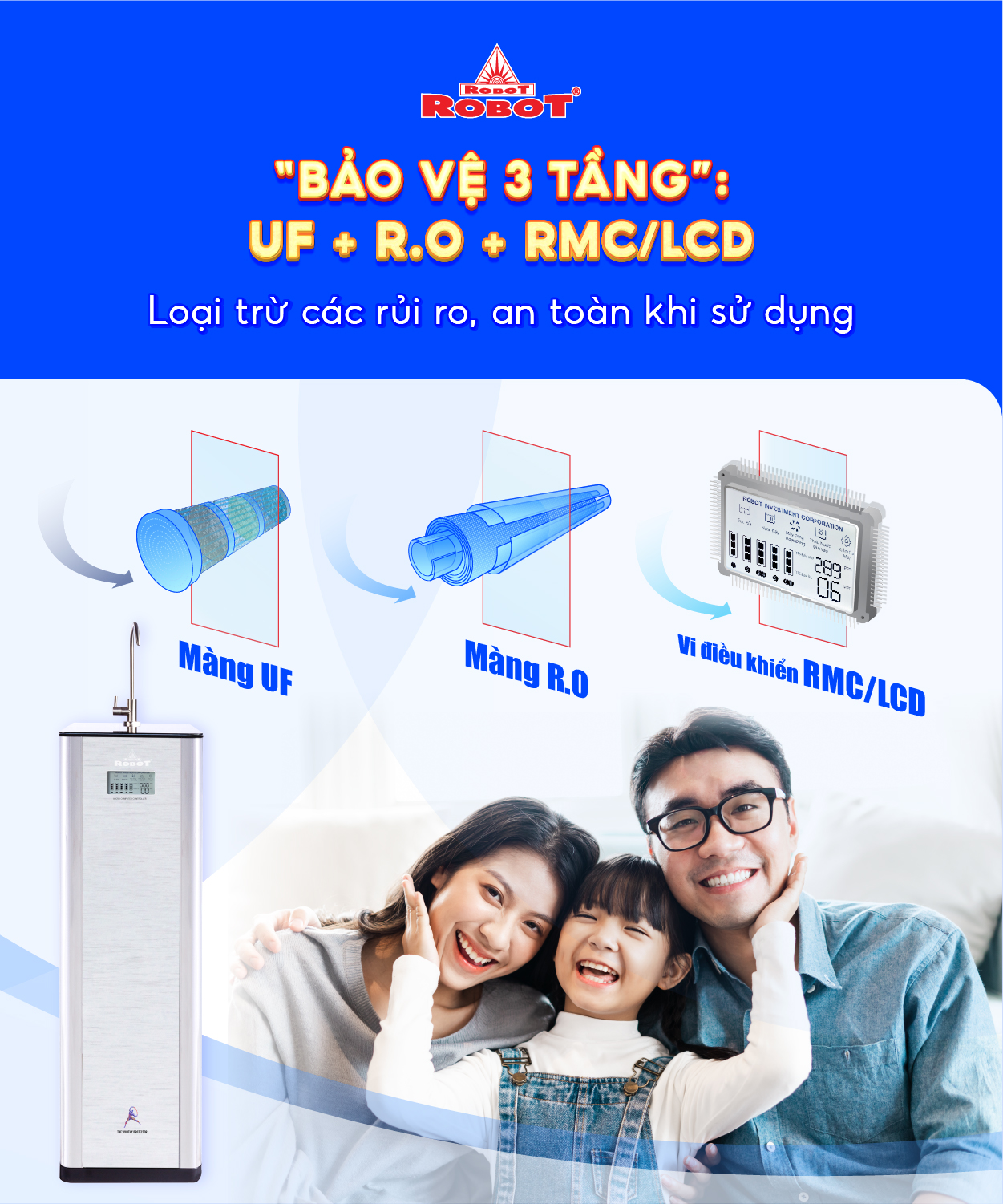 1. Máy lọc nước “Bảo vệ 3 tầng” UF + RO - RMC/LCD